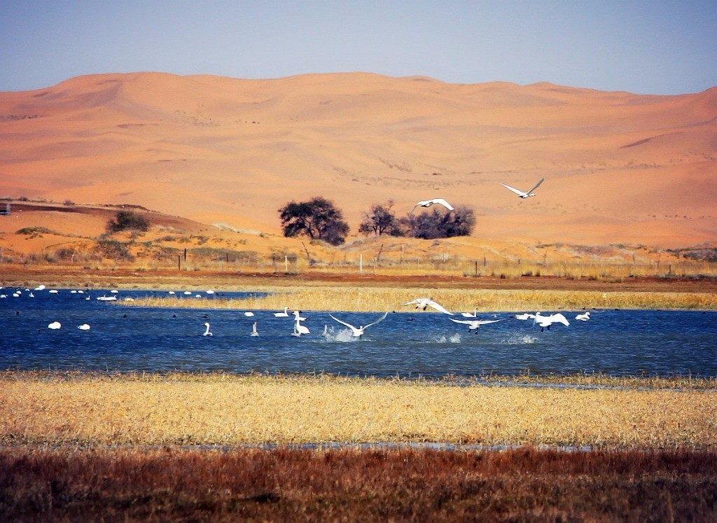 上午抵达敦煌,西餐后旅逛以戈壁奇迹著称“沙泉共存千余年”的鸣沙山、新月泉。二者从古到今以“山泉共处,沙水共生”的奇奥景不雅著称于世,被誉为“塞外风光一绝”。