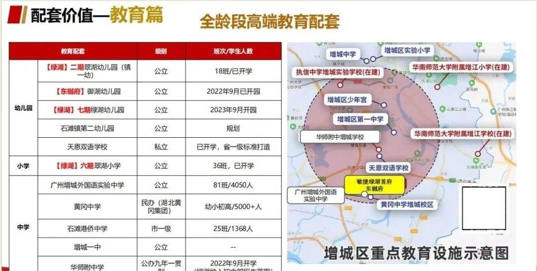 A! 小区内部自带两所长儿园和一所小学,此中二期翠湖长儿园已开园,六期翠湖小学已开学。此外,项目还被纳入华南师范大学从属中学增城学校招生范畴。